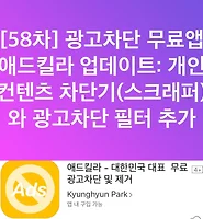 [50차] 무료 광고 차단 앱, 애드킬라(Pro) 광고 박멸 필터 업데이트하세요. 본문